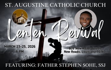 St. Augustine Catholic Church, in beautiful New Roads, Louisiana. We hope you and your family will have a warm and spirit-filled experience with us as we worship and fellowship together at our services, events, and ministries. Many blessings to all.