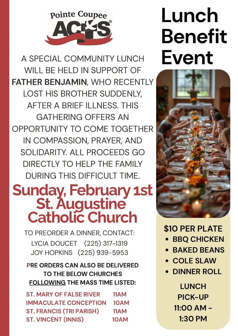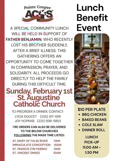 If there is anyone who would like join any committee or volunteer at St Augustine Catholic Church please contact the Church office at 225-638-7553 for a list open positions.